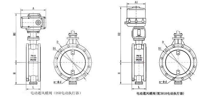 | H1 | 根據電動通(tong)風蝶閥所需(xū)力矩而定,配(pèi)置電動執行(hang)器不同,外形(xing)尺寸也不相(xiang)同,詳情請咨(zī)詢公司技術(shu)部! | |||||||||||||||||